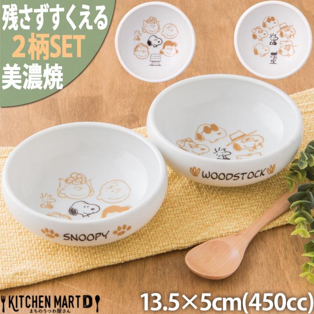 スヌーピー ピーナッツ ブラウンパル 2柄SET 残さずすくえる ボウル 13.5×5cm 450cc 美濃焼 日本製 小さい すくいやすい 離乳食 お食い初め 幼稚園 保育園 給食 カレー皿 スープ 食器 白い 白磁 陶器 かわいい 赤ちゃん 子供 キッズ 食洗器対応 レンジ対応 ラッピング不可
