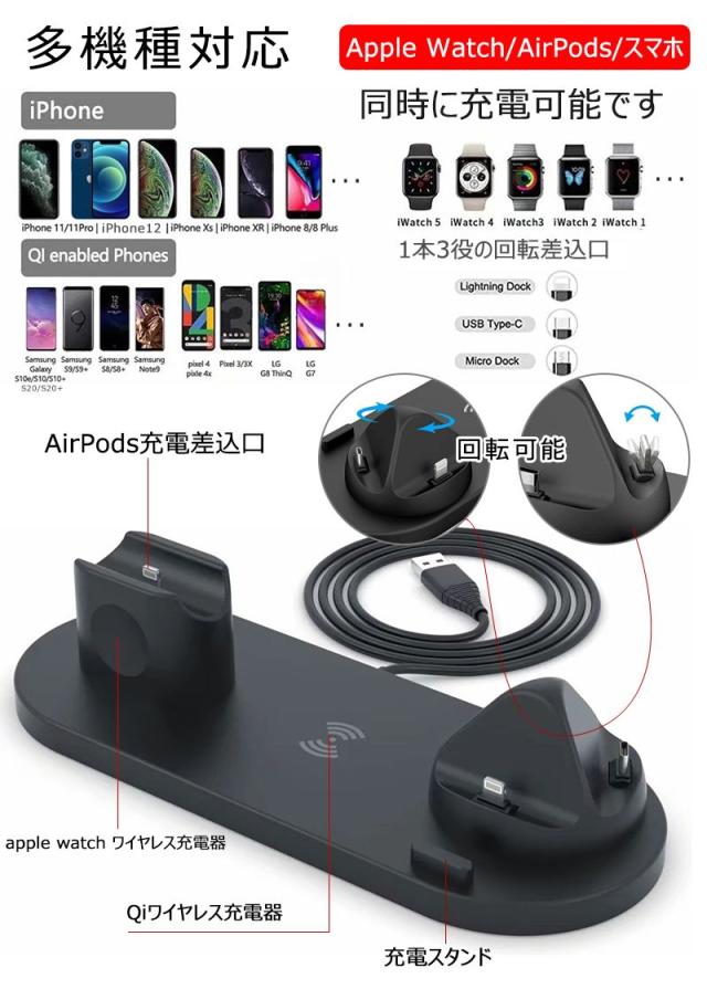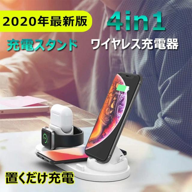 ワイヤレス充電器 4in1 充電スタンド iPhone 12 mini pro apple watch airpods 充電スタンド Qi 急速充電器 同時充電 充電ステーション galaxy Micro Type-C 急速 充電 スタンド 多機能 充電ドック ワイヤレスチャージ 置くだけ充電 Qi認証 Airpods充電