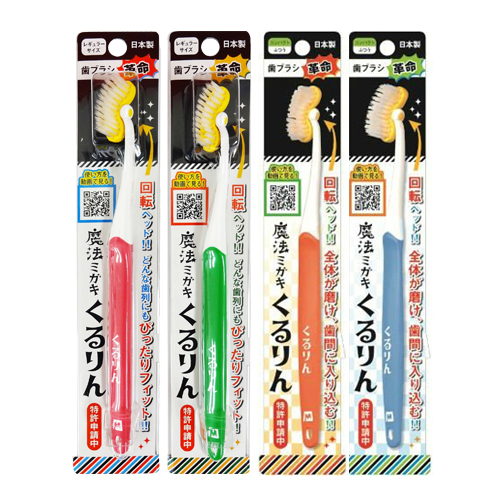 【あす着】魔法ミガキ くるりん (レギュラー・コンパクトから選択) - バナナ型リングヘッドと乗り越えアームで全体が磨け、歯間に入り込む!!【回転ヘッド歯ブラシ】