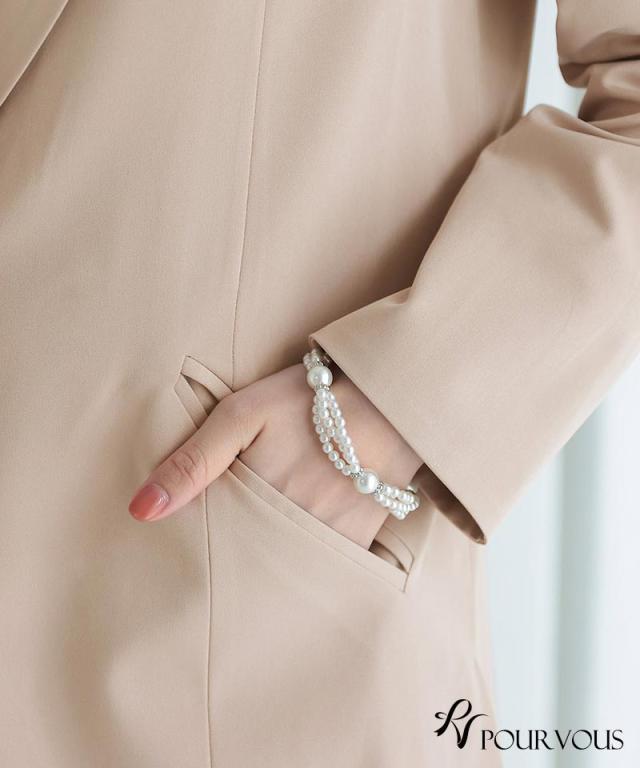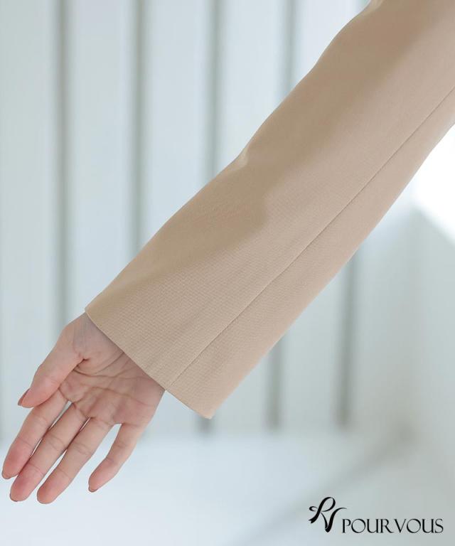 サラッと羽織るだけでナチュラルなAラインができるジャケットです。縦のラインを強調してくれるので華奢見えします。