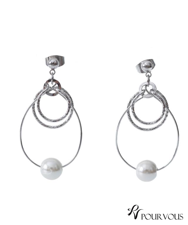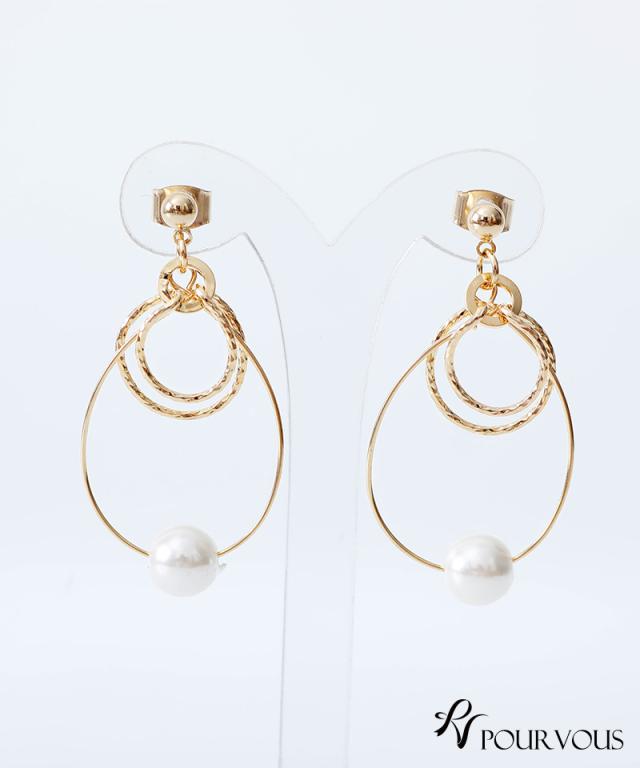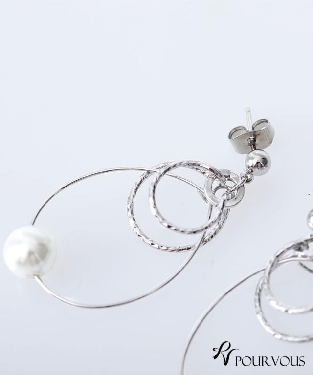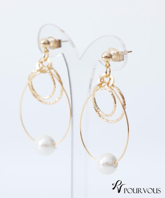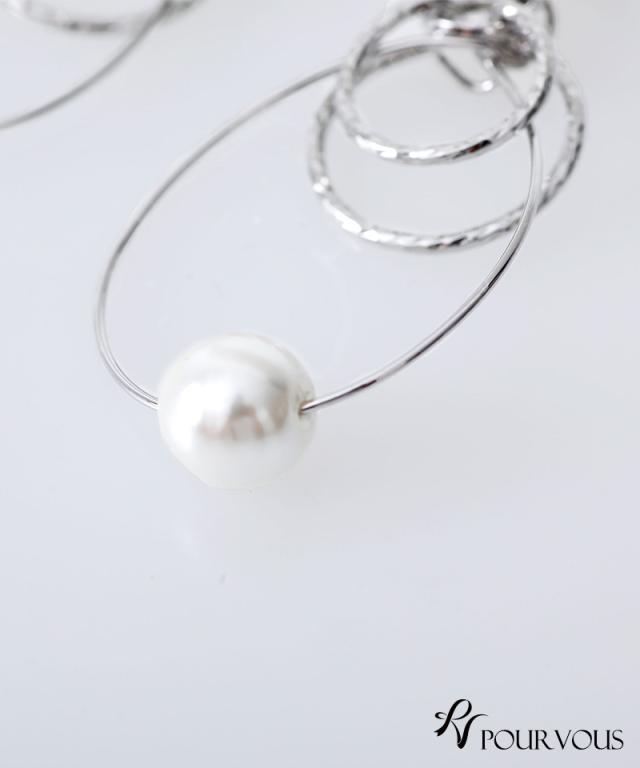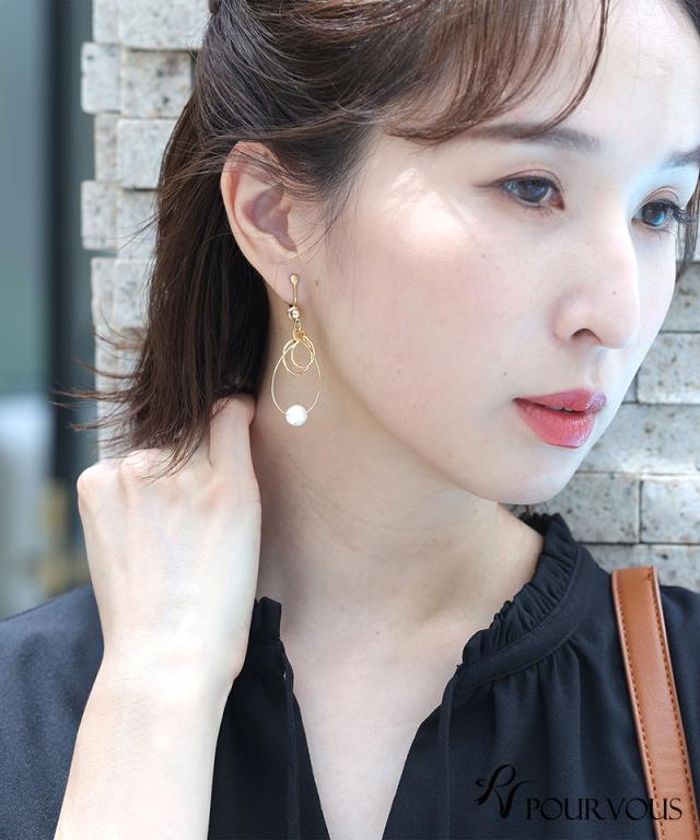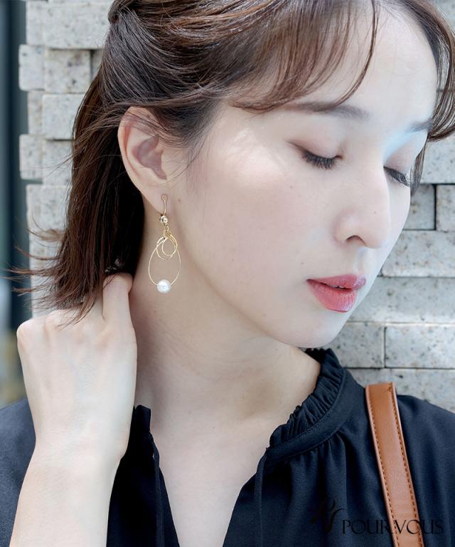 ■上品に揺れるパールが可愛い♪重なり合ったフープとパールが動くたびに上品に揺れます。