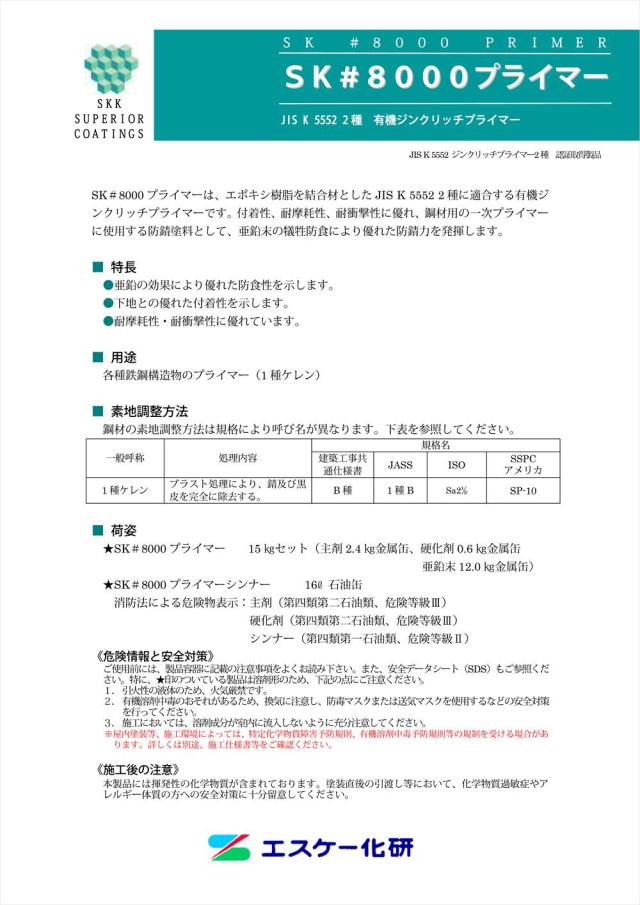 SK#8000プライマー 15kgセット エスケー化研 サビ止め用 塗料