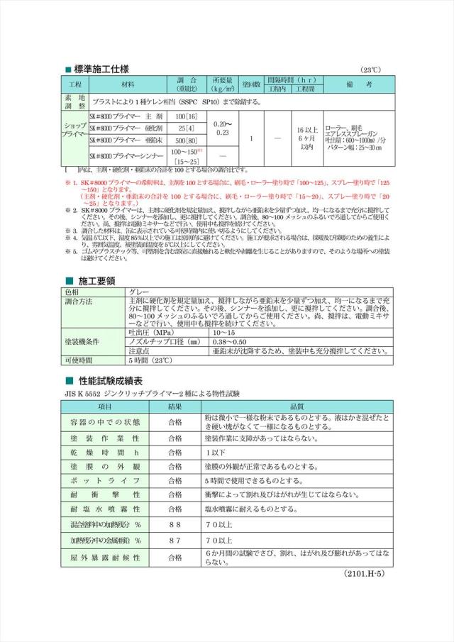 規格 JIS K 5552 ジンクリッチプライマー 2種