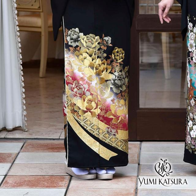 桂由美 ブランド レンタル 黒留袖 フルセット 貸衣装 【結婚式 婚礼 貸衣装】【往復送料無料】赤