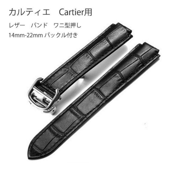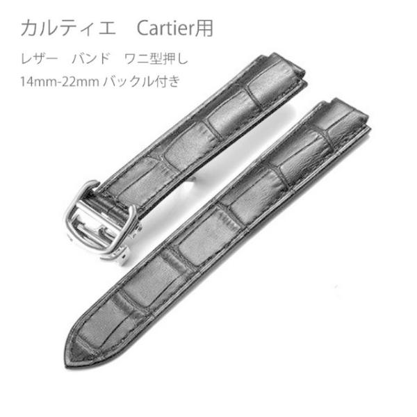 カルティエ Cartier 用 社外互換品 レザー バンド ワニ型押し 14mm-22mm バックル付き