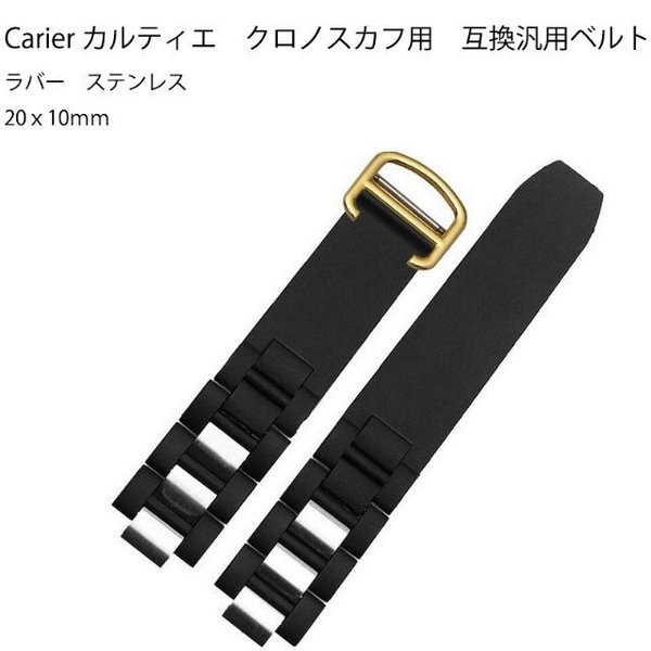 Carier カルティエ クロノスカフ用 互換汎用 ラバー ステンレス ベルト 20x10mm W10198U2