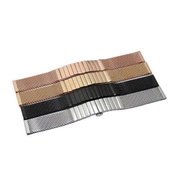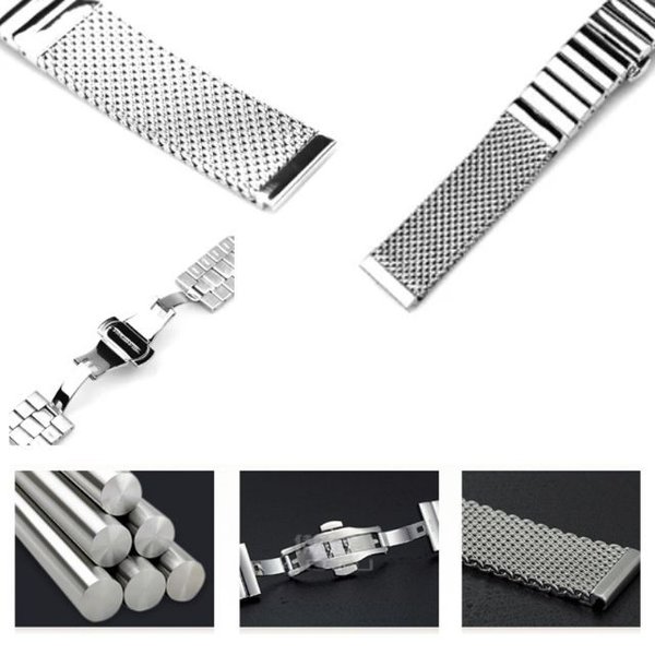 iwcアイ・ダブリュー・シー腕時計など装着可能互換汎用メッシュメタルベルト素材:ステンレス製取付幅:18mm 20mm 22mm 24mmベルト全長:約184mm厚み:約2.5mmIWCの腕時計に似合うメッシュメタルバンドです。汎用のベルトになりますので、IWC以外の腕時計にもお取付いただけます。サイズ、形状をご確認のうえ、お買い求めくださいますよう、お願いいたします。※素材の性質上、お使いの時計によっては表示サイズでお取り付け出来ない場合がございます。 あらかじめご了承下さい。ブレスレットを時計に装着する際にエンドピースの研磨加工が必要な場合がありますのでご了承ください。※当店ではコマ詰め及び長さ調整は行っておりませんので、お客様ご自身で行っていただきますようお願いいたします。