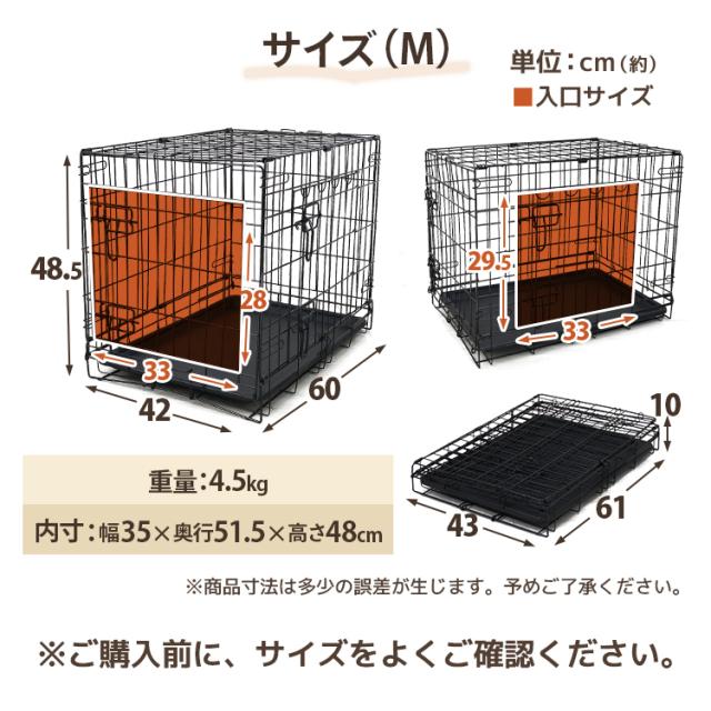| ・カラー:ブラック ・サイズ(約):60cm×42cm×48.5cm (折りたたみ時(約):61cm×43cm×10cm) ・材質:スチール、ABS樹脂 ・重量(約):4.5kg ・参考サイズ:ミニチュアダックスフント・コーギー 等 |