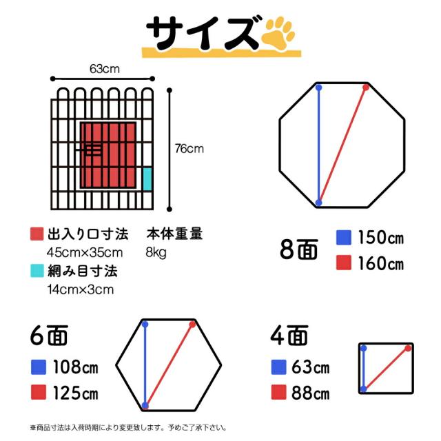 ペットサークル 8面サークル 高さ76cm ペットケージ ペットフェンス ケージ ゲージ サークル トレーニングサークル 犬用ケージ 小型犬用 中型犬用 屋内用 屋外用 室内用 犬小屋 犬 ペット ペット用品