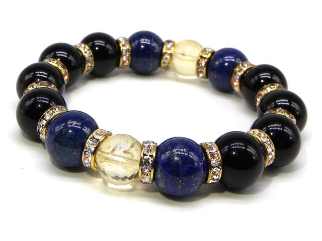 「BIG ONE」 ラピスラズリ オニキス シトリン ブレスレット パワーストーン ブレスレット メンズ 天然石 数珠 アクセサリー メンズブレスレット パワーストーンブレスレット 天然石ブレスレット 金運 お守り 男性用 ブラック 黒 ブルー 青