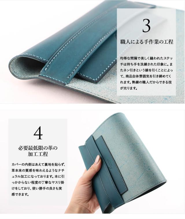 フリーサイズで本の厚みで調整ができる革のブックカバー
