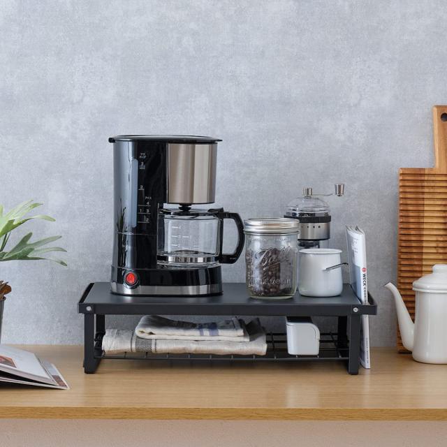 キッチンカウンターや机の上など、レンジの上以外でも「見せる収納ラック」として活躍します。