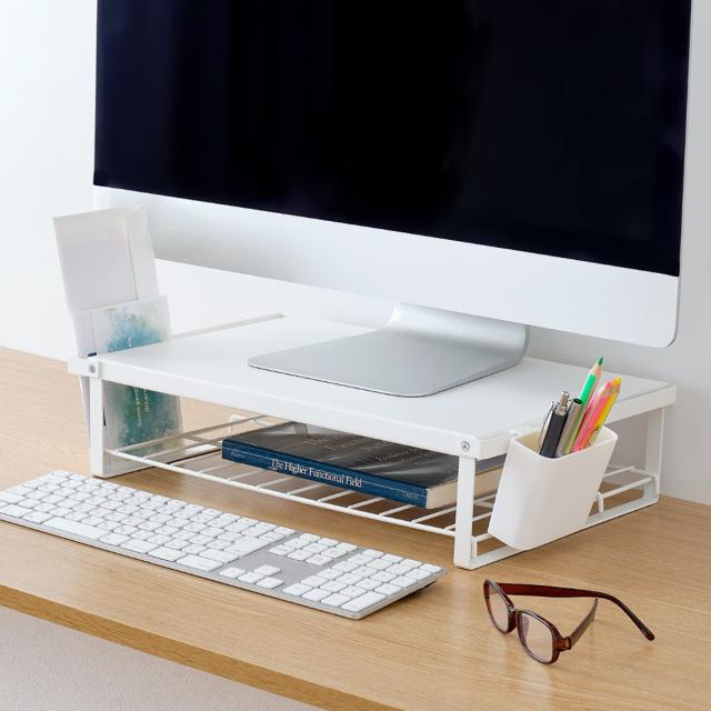 活躍シーンはキッチンだけではなく、デスク周りの整理整頓やパソコンのモニターラックとしても活躍します。