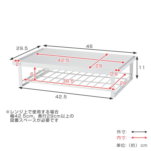 | サイズ | 約 幅46×奥行29.5×高さ11(cm) 棚受け高さ:約 6cm |