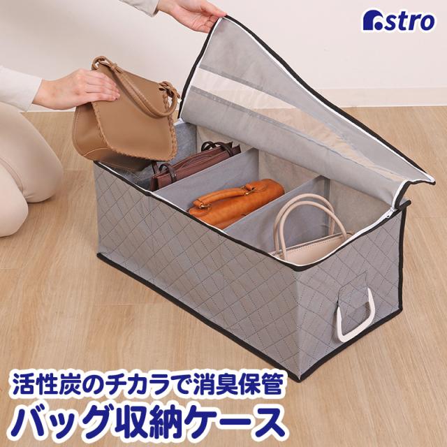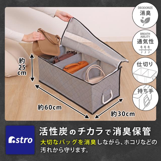 活性炭消臭 脱臭 バッグ収納ケース 収納ボックス カバン 収納袋 保管ケース 通気性の良い不織布製 仕切り2か所 鞄 埃除け 透明窓 持ち手付き アストロ 171-47