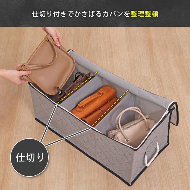 ●仕切り付きでカバンをスッキリ収納。たたんだ衣類の収納にも使える。