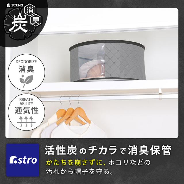 活性炭で消臭 帽子収納ケース 通気性の良い不織布 4〜5個収納 埃除け 型崩れを防ぐ キャップ ハット 収納袋 収納ボックス 保管 アストロ 171-60