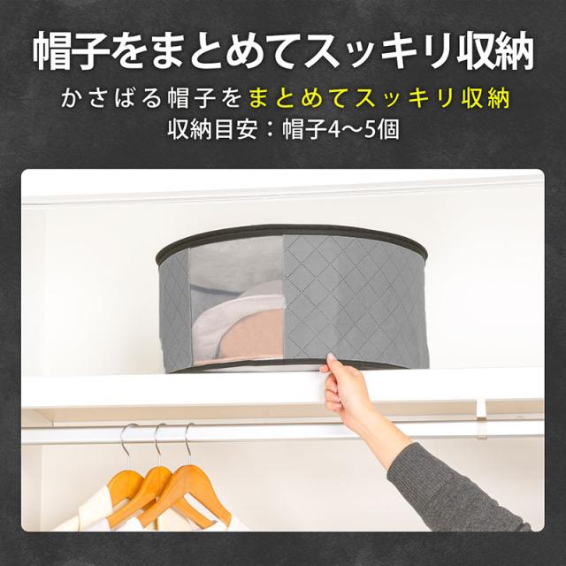 ●ゆったりとした円柱形。キャップやハットなどの帽子を型崩れさせずにまとめて保管。使わないときは折りたたんでコンパクトに収納できる。