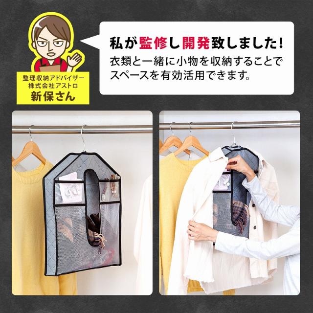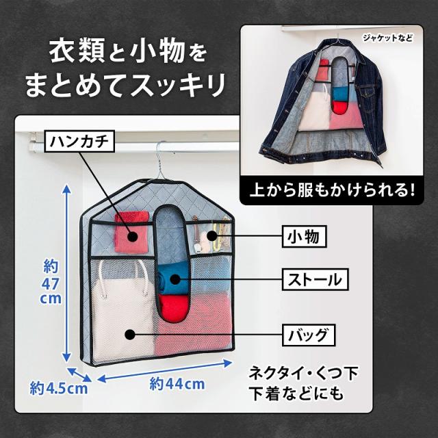 商品名:活性炭消臭 収納できちゃう ハンガーカバーカラー:グレーサイズ:約幅44×奥行4.5×高さ47cm材質:ポリプロピレン・活性炭シート・ポリエステル・ポリエチレン内容:1個生産国:中国【特長】●通気性の良い不織布×活性炭シートを使用したハンガーカバー。●お持ちのハンガーに取り付けるだけで、吊り下げ収納に大変身。●衣類と共にファッション小物などを収納しスペースを有効活用。●活性炭のチカラで衣類を脱臭。職場のロッカー内で使用しても。●メッシュポケットにはマフラーや手袋、透明ポケットにはアクセサリーなどを。【ご注意】●ハンガーは付属しておりません。●洗濯はできません。●ハンガーの形状、サイズによっては使用できない場合があります。【不織布とは】不織布(ふしょくふ)とは、繊維を糸にして織ったり編んだりせずに、そのままシート状にした「織らない布」のことです。通気性が良くホコリを通しにくい生地のため、衣類や寝具の収納に適しています。アストロではスパンボンド方式で製造されたポリプロピレン製の不織布を主に使用しています。ASTRO CO., LTD established in 1970