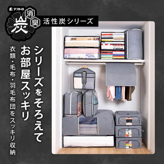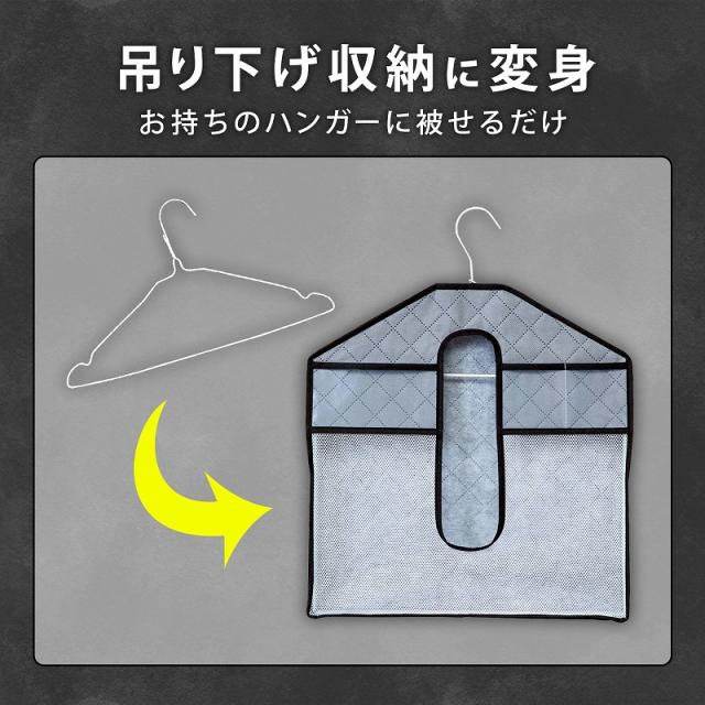 吊り下げ収納 クローゼット収納 活性炭消臭 不織布製 ハンガーカバー グレー 小物収納 アストロ 171-63