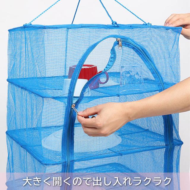 アストロ 干しかご ブルー Lサイズ 3段 逆U字ファスナー 干し網 ドライネット 物干しネット 530-03
