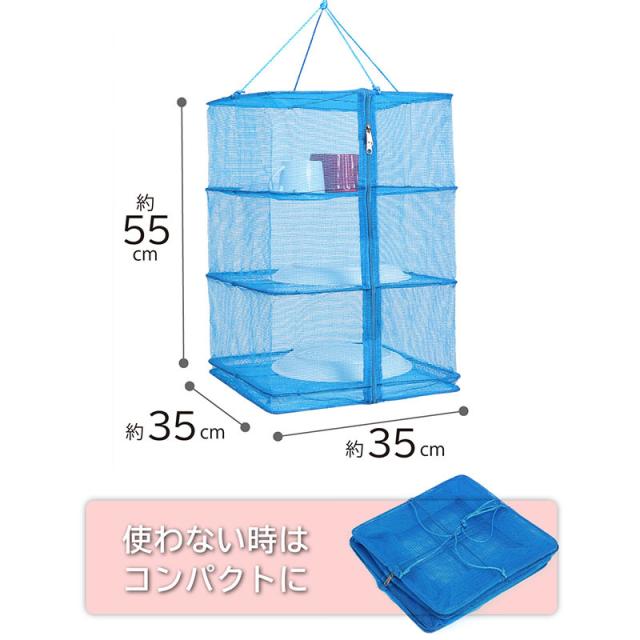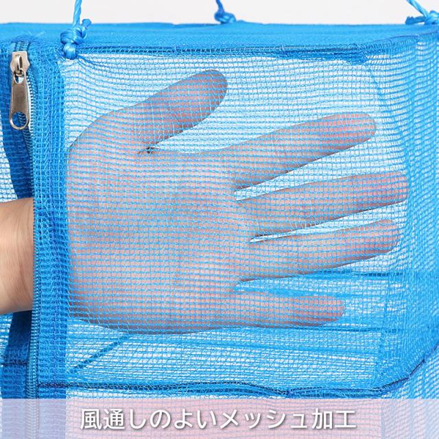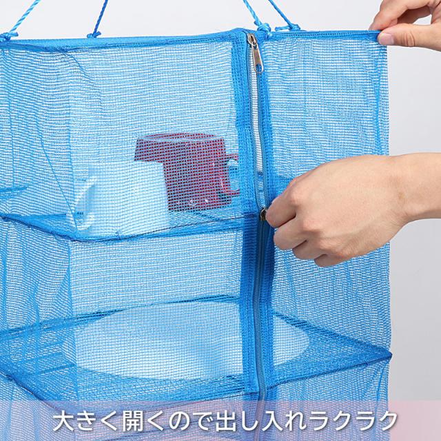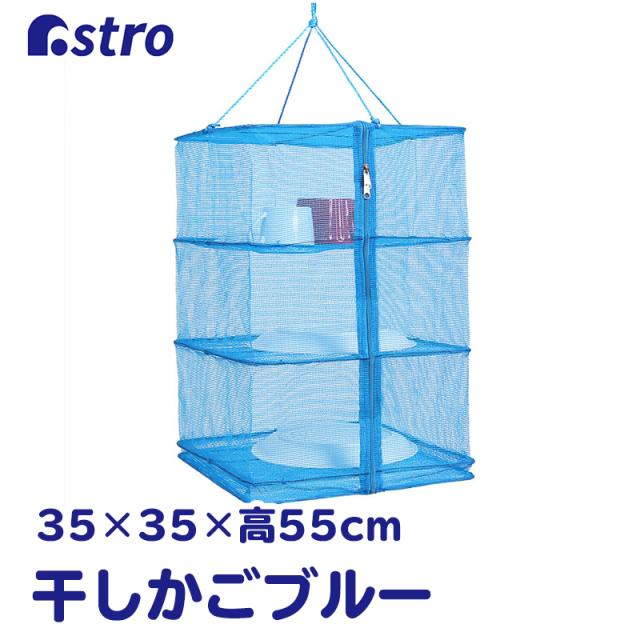アストロ 干しかご ブルー Mサイズ 3段 ストレートファスナー 干し網 ドライネット 物干しネット 530-04