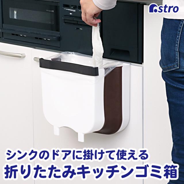 アストロ ごみ箱 小 ブラウン 折りたたみ キッチン ダストボックス 吊り下げ ホルダー付き 821-22