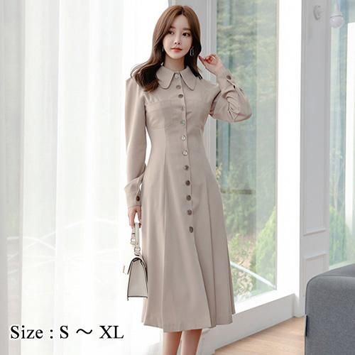 きちんとした丸襟と前開きボタンが清廉で知的なお姉さんの印象に。