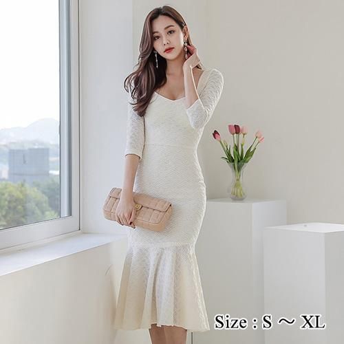【グラシア】 キャバ ドレス キャバドレス ワンピース ミディアムドレス マーメイドライン 細見え デコルテ 高級感 柔らか アイボリー S M L XL