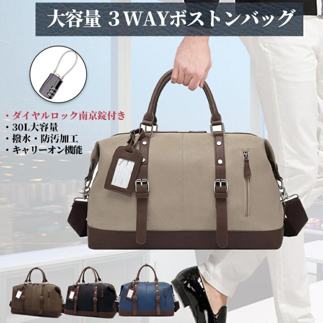 ボストンバッグ ダイヤルロック式南京錠 鍵付き 3way 旅行バッグ 旅行かばん 旅行鞄 大容量 トラベルバッグ ショルダーベルト 底鋲付き ビジネス ジム アウトドア スポーツ トートバッグ シンプル おしゃれ ゴルフ テニス 帰省 旅行 出張 機内持ち込み可 男女兼用 撥水 防汚