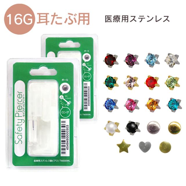 ピアッサー 16G 耳たぶ用 2個セット 両耳用 医療用ステンレス サージカルステンレス セイフティピアッサー 金属アレルギー対応 ピアサー 耳用ピアッサー ファーストピアス ピアス 穴開け 穴あけ 16ゲージ つけっぱなし シルバー ゴールド