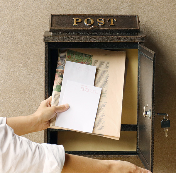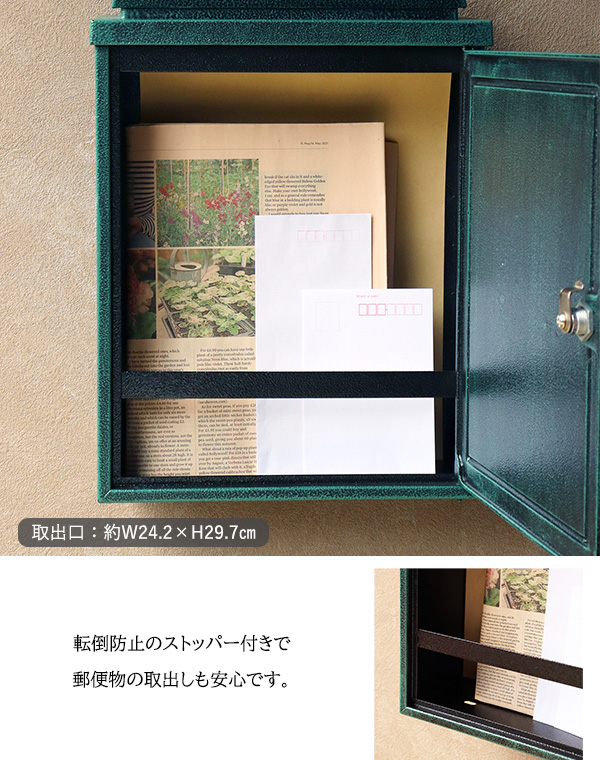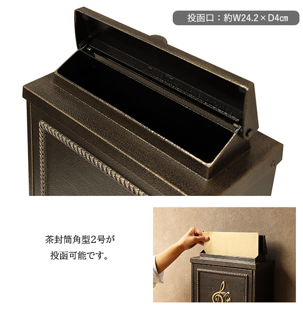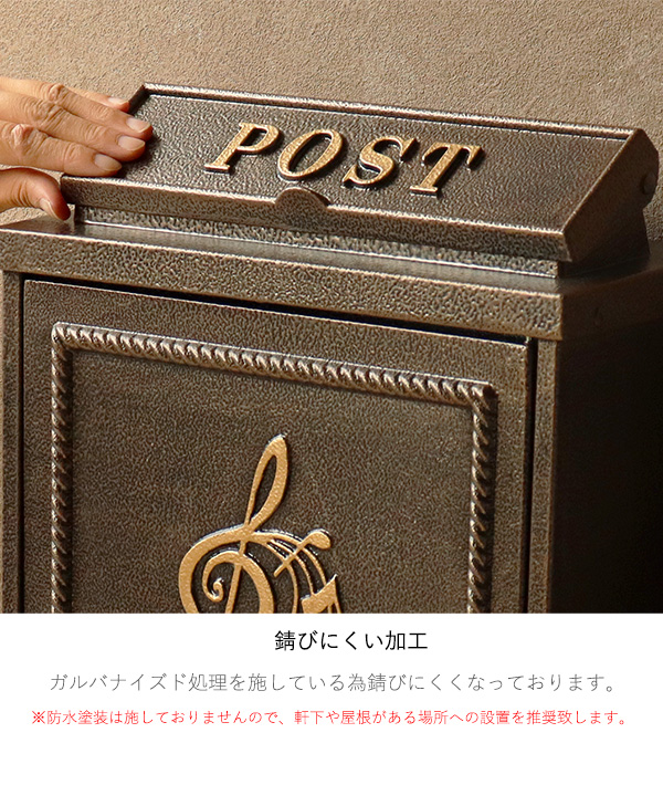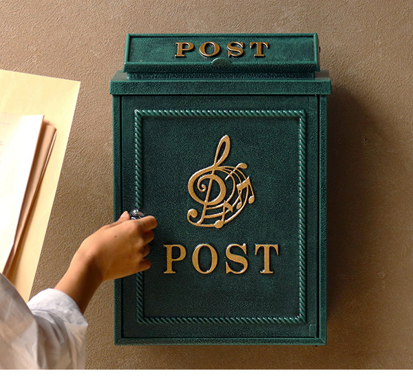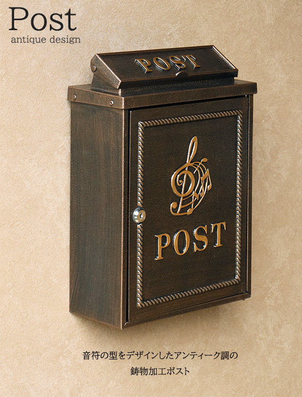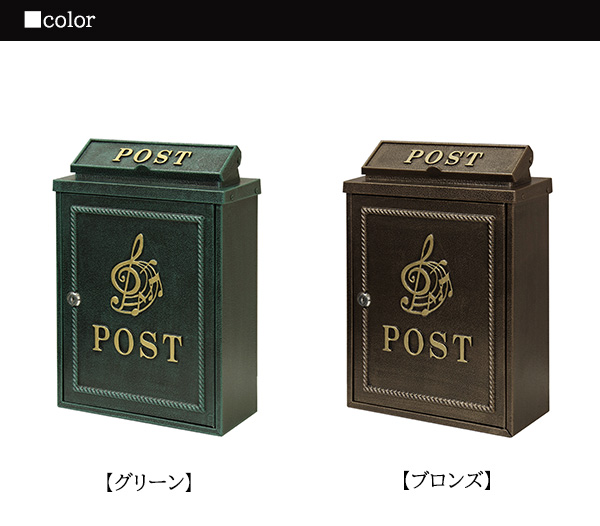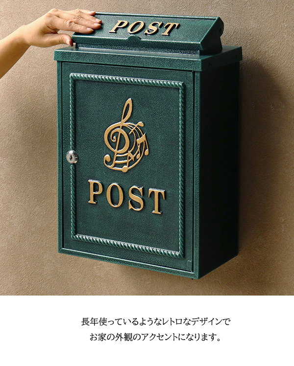 壁掛けポスト 鋳物が醸すレトロ感 送料無料 アンティーク 郵便受け 郵便ポスト 壁付け かわいい おしゃれ 鍵付き 小さめ 錆びにくい ブロンズ グリーン