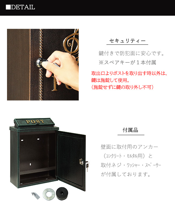 【キーワード】 鋳物 レトロ 壁掛けポスト アンティーク調 郵便受け 郵便ポスト 壁付け かわいい おしゃれ 鍵付きポスト 小さめ 錆びにくい ブロンズ グリーン アンティーク風 サビにくい 安い 激安 可愛い 玄関 コンパクト レトロポスト アンティークポスト おすすめ 人気ランキング 壁掛け郵便ポスト 壁付け郵便受け 壁付け郵便ポスト