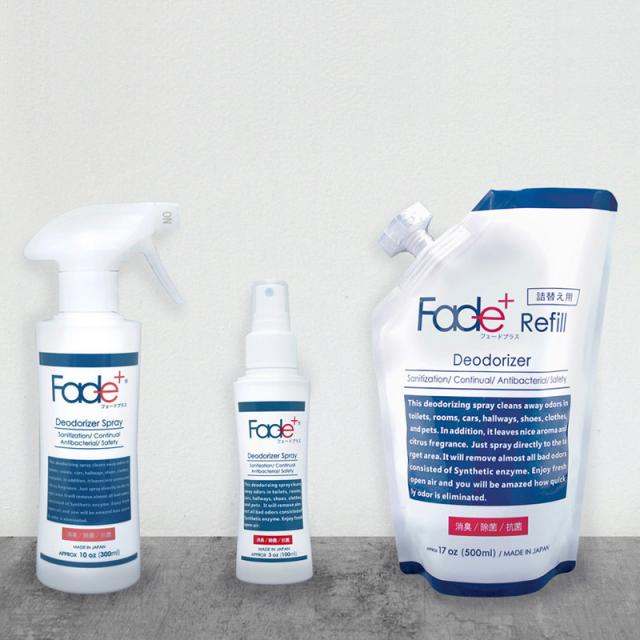 Fade+/フェードプラス 消臭スプレー300ml 悪臭そのものに人工酵素が直接作用し消臭、抗菌、除菌効果が長く続く消臭持続期間は約90日 トイレ、靴、排水口、服についてタバコのニオイなども瞬間消臭 家や車、スポーツ用具にオススメ