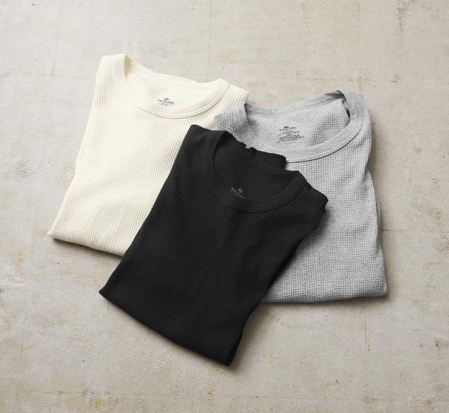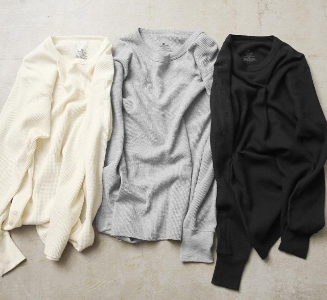 ワッフル形状に編まれた素材はその凹凸に、体温で暖まった空気を蓄えることで高い保温性を生み出します。 良質な綿を使用しているため着心地も快適。胴体部分は、サイドの縫い目がない丸胴仕上げで縫い代が肌に当たらずストレスフリーな着心地◎ ほつれやヨレの心配もありません。