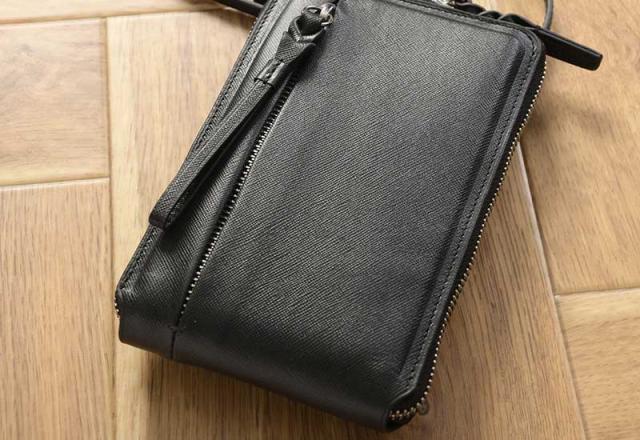 Pid 型押し牛革 ネックウォレット ショルダーポーチ selva 首掛け 本革 ポーチ 財布 便利 手ぶら 【送料無料】