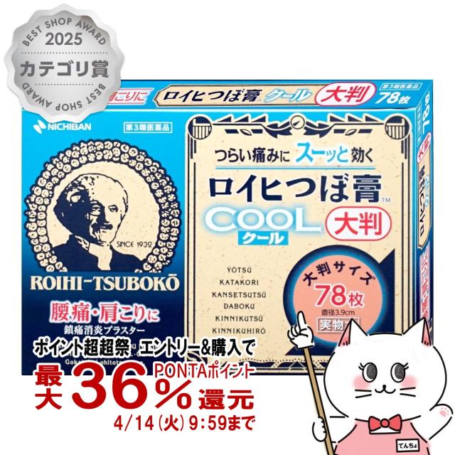【超超祭 最大36%還元】【第3類医薬品】ロイヒつぼ膏 クール 大判 78枚(セルフメディケーション税制対象)[ニチバン][メール便発送OK](6045898)