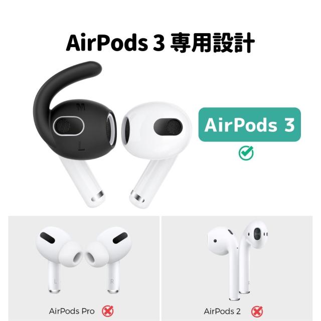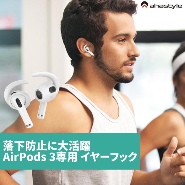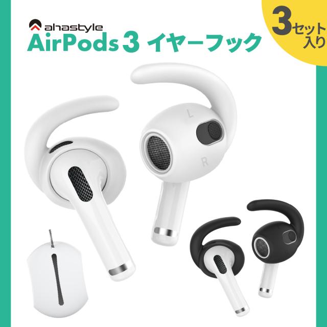 AirPods 第三世代 イヤーピース フック 3セット イヤホンカバー エアーポッズ 3 落下防止 イヤホン 外れ 防止 ランニング ワークアウト スポーツ ケース付属 密着 シリコン ホワイト ブラック 白 黒 ジム ジョギング ウォーキング AHAStyle