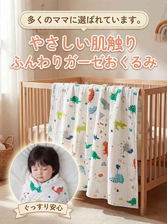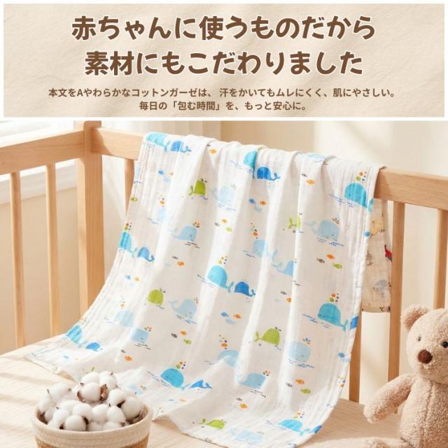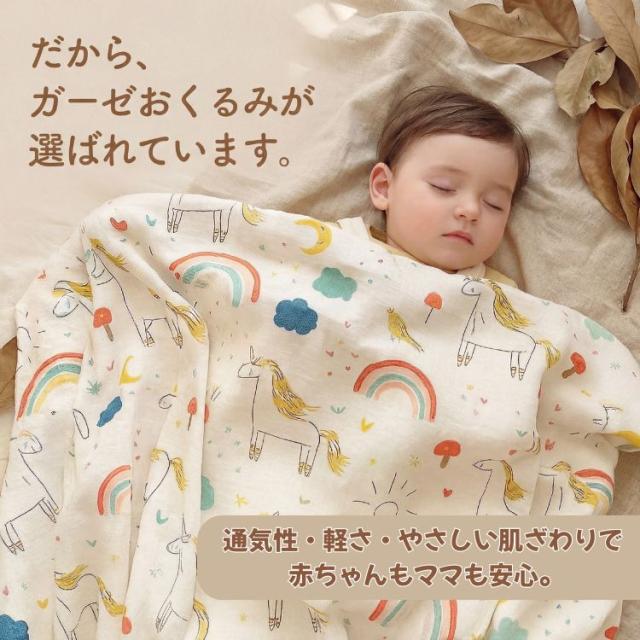 赤ちゃんのお肌に優しい ガーゼ素材のおくるみです。