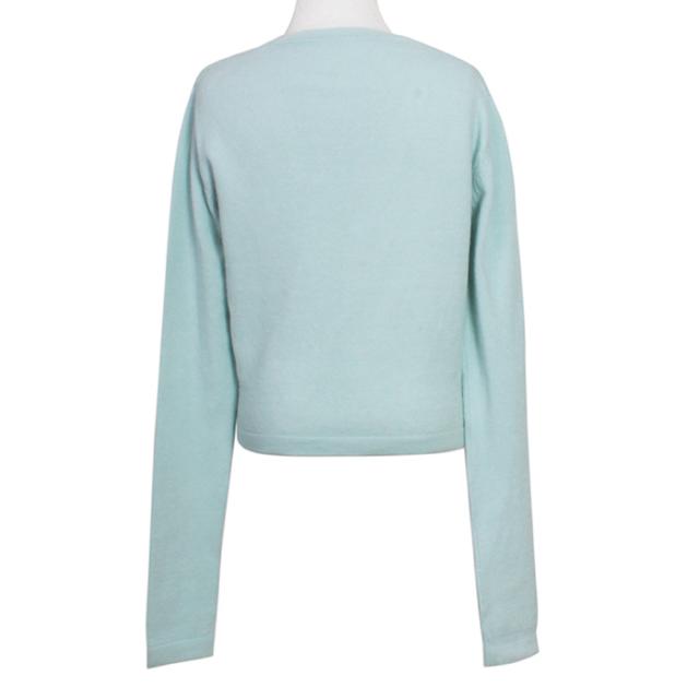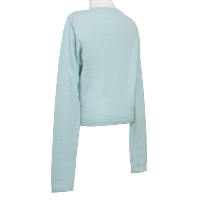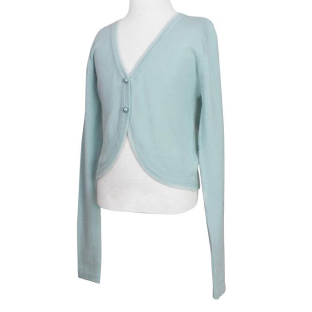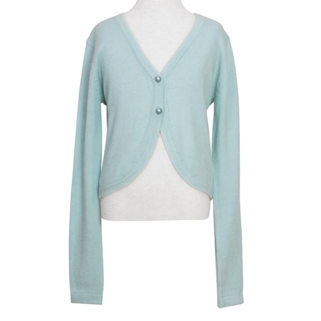 丸みのあるカッティングと、パールのボタンが、上品でやさしい印象のデザインです。