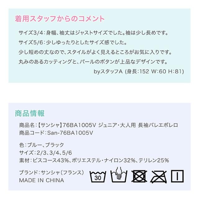 【サンシャ】76BA1005V ジュニア・大人用 長袖バレエボレロ