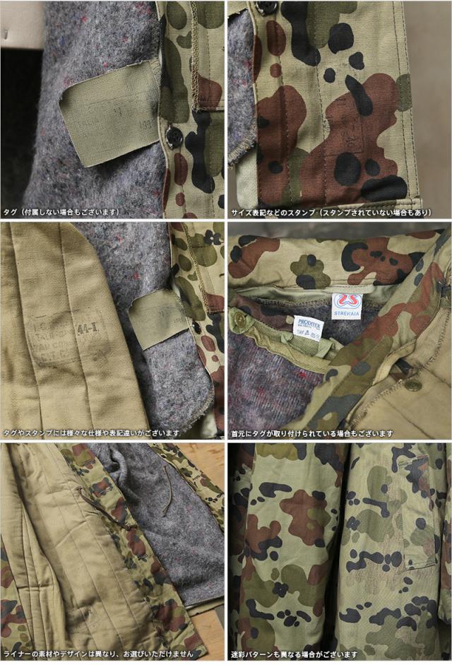 | 商品状態 | 軍放出のUSED ※こちらの商品はUSED品です。製造された年代などによって1点1点迷彩パターンやライナーの素材、色合いやタグなどのデザイン、状態は異なります。良い雰囲気のものをセレクトしていますが、商品の状態に関してはお選び頂けませんので予めご了承下さい。 | |||||||||||||||||||||||||||||||||||||||||||||||||||||||||||||||||||||||||||||||||