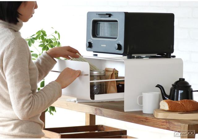 スペースを広々使いたいのにごちゃつきがちなキッチン周りをすっきり収納できる、おしゃれなトースターラック兼ブレッドケースです。
