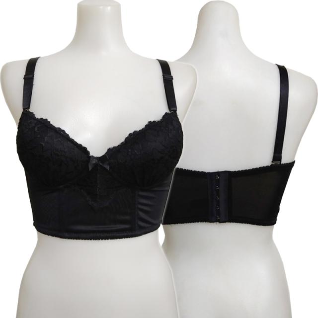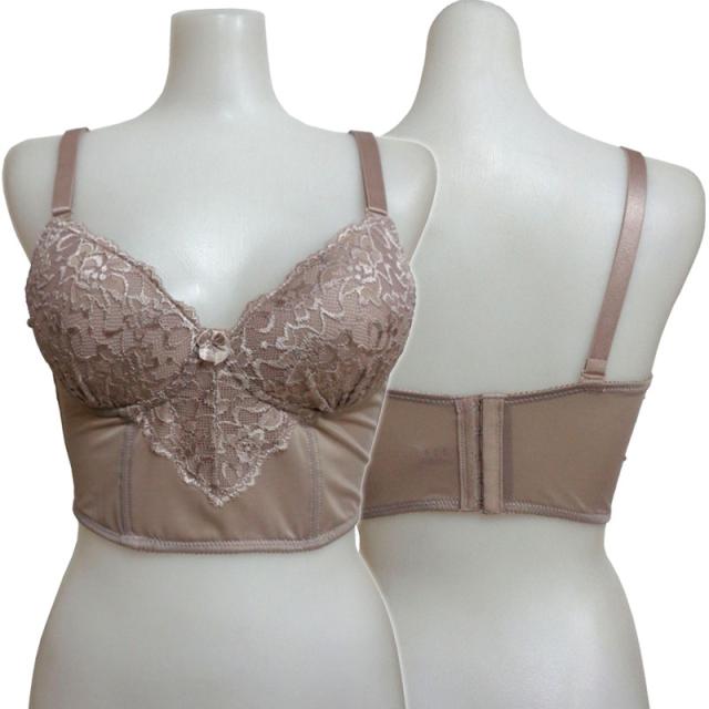 【 サテン レース 補正 脇高 脇高ブラ 5段ホック ロングブラ 楽 楽チン】