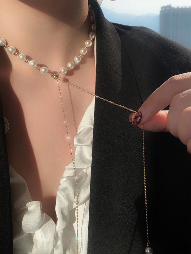 - 注文して2日後に届きました。 しっかり梱包してあり、巾着と、紙製バッグが付いていました。パールのネックレスは長さ調節自由なので色々な着け方が出来て楽しいですし、かわいいです。購入して正解でした。