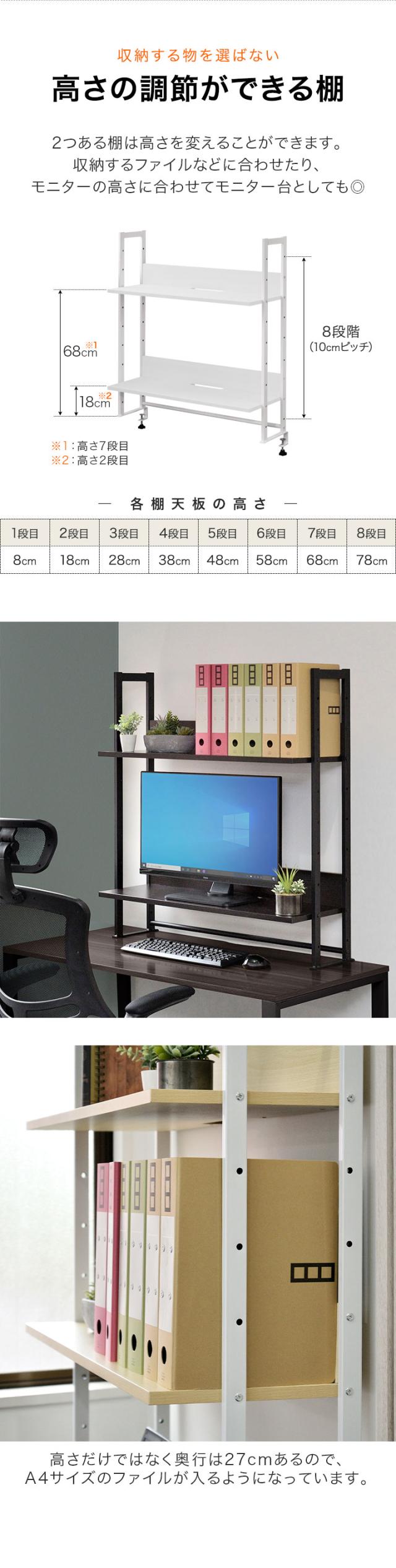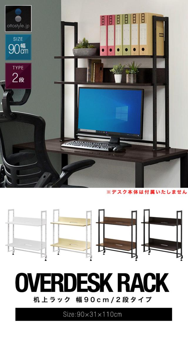 机上ラック 机上台 幅90cm 2段 上置棚 卓上棚 モニター台 モニタースタンド 奥行31cm×高さ110cm 高さ調整 木目 クランプ固定 デスクボード キーボード収納 本棚 卓上 台 パソコンデスク 机上ラック OAラック デスク上置棚 1年保証 送料無料