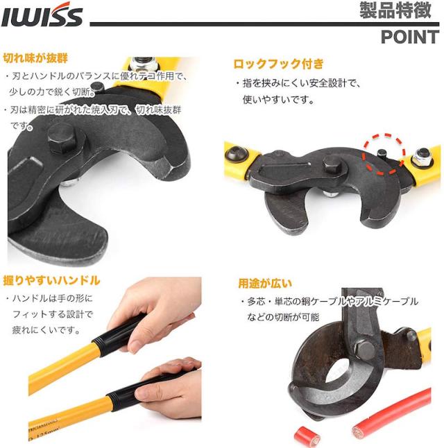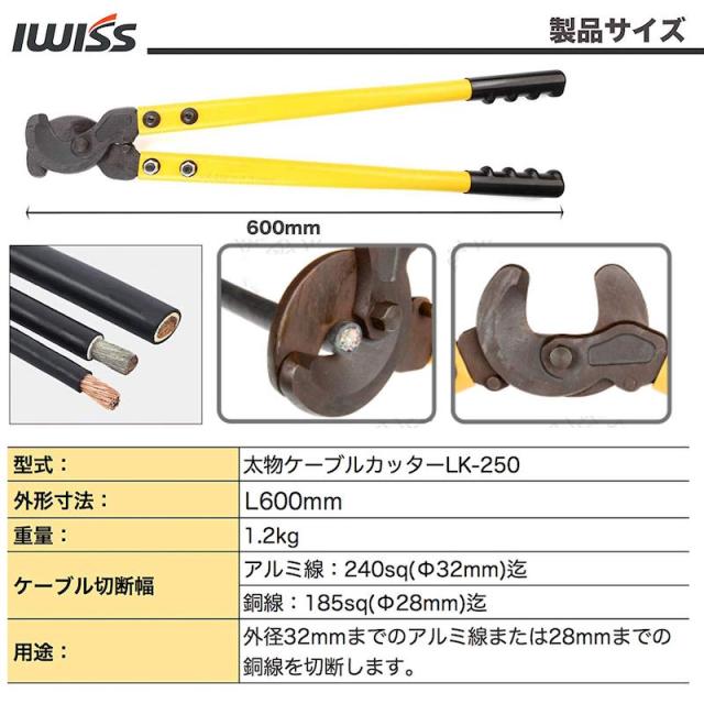 IWISS 太物ケーブルカッター 電線サイズ240sq迄の銅線やアルミ線 LK-250(旧HS-250)