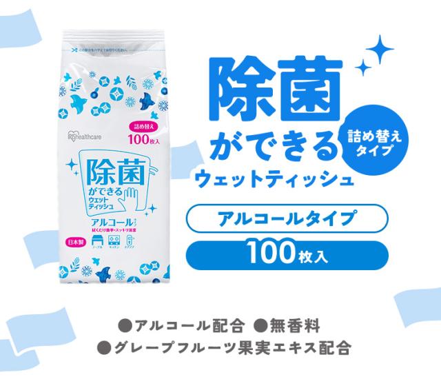 ウェットティッシュ アルコール 詰替 WTT-100A ウェットティッシュ アルコール エタノール 除菌 除菌シート 詰め替え 詰替 100枚入り アイリスオーヤマ