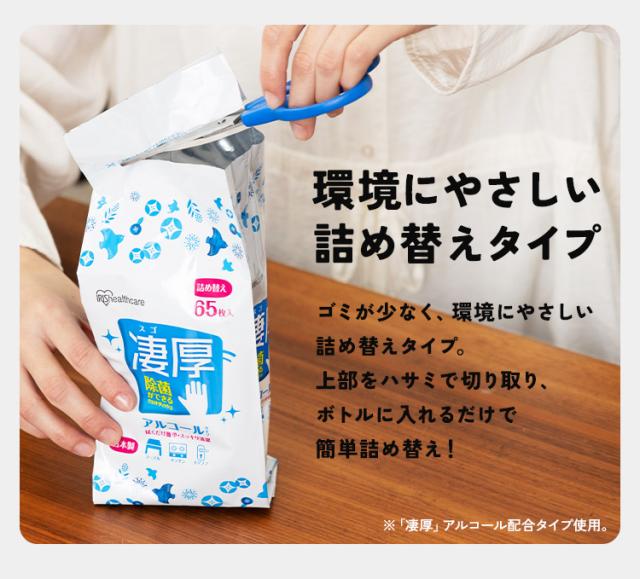 ※詰め替えの際は必ず「アイリスオーヤマ 除菌ができるウェットティッシュ アルコール ボトル」に入れてください。