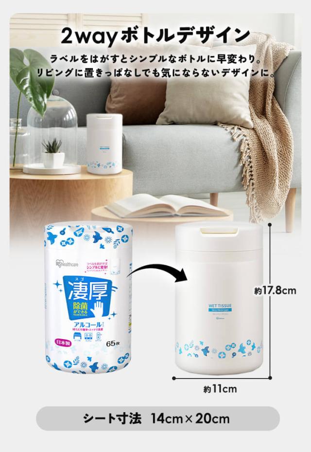 ウェットティッシュ アルコール 厚手 本体 WTB-65A ウェットティッシュ アルコール エタノール 除菌 除菌シート 厚手 厚め 厚み 本体 ボトル 容器 ケース 65枚入り アイリスオーヤマ